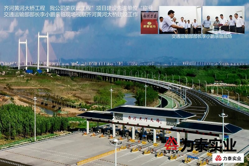 齊河黃河大橋工程 我公司榮獲此工程”項(xiàng)目建設(shè)先進(jìn)單位“稱號(hào) 交通運(yùn)輸部部長(zhǎng)李小鵬親臨現(xiàn)場(chǎng)視察大橋建設(shè)工作