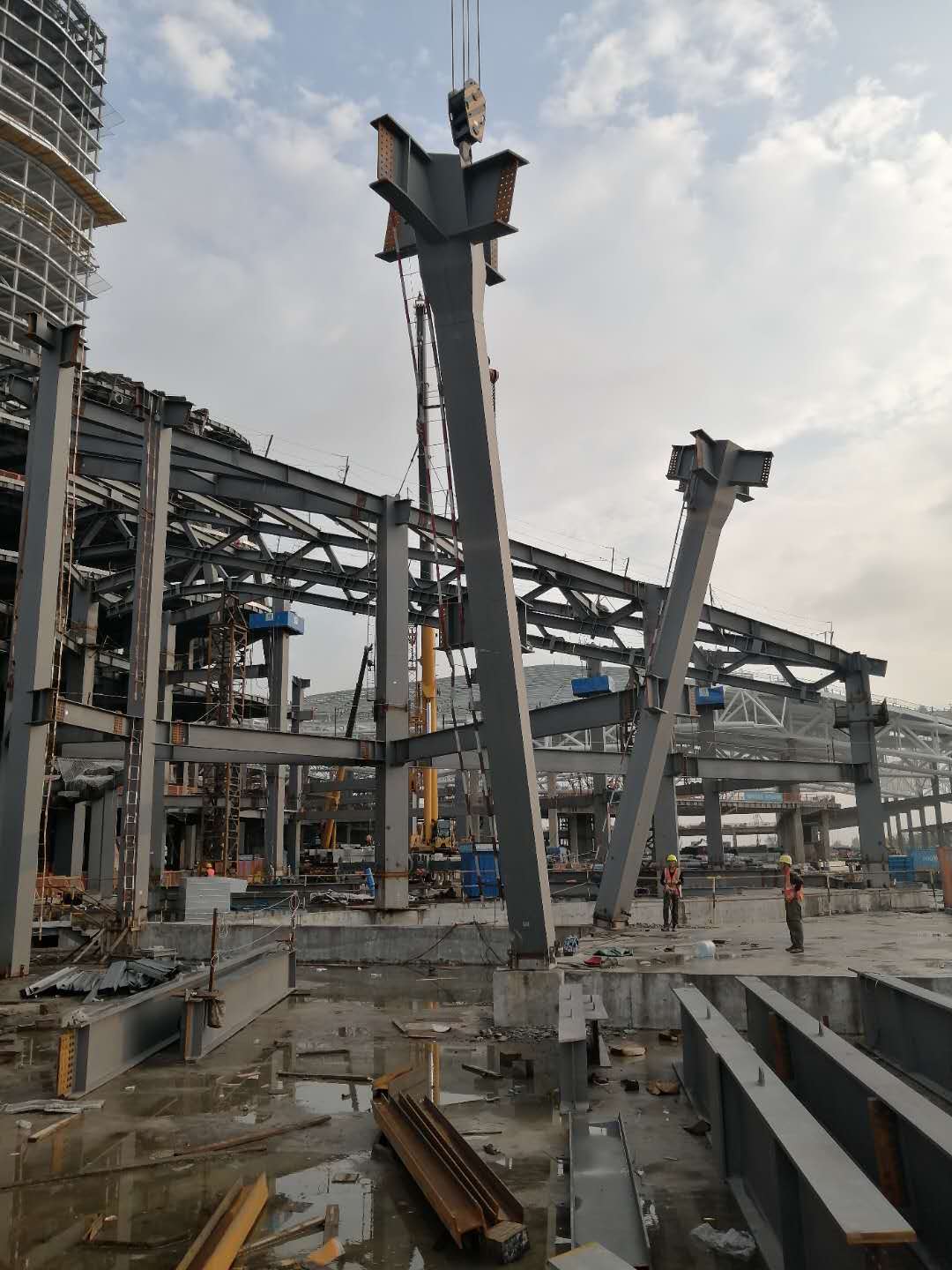 南京揚(yáng)子江項(xiàng)目斜鋼柱安裝