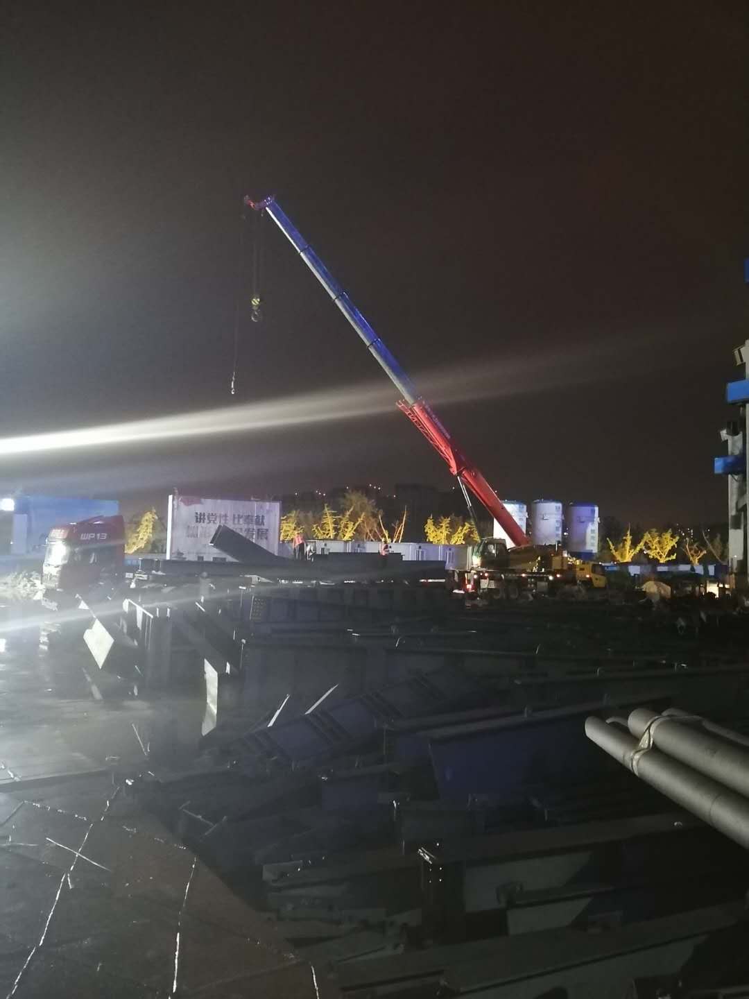 南京揚(yáng)子江項(xiàng)目加班卸車,吊運(yùn)材料