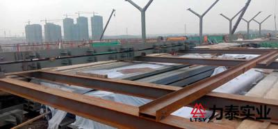 山東新藍(lán)海三層鋼梁吊裝